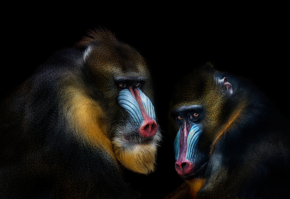 So I chose to make the portraits from a feasible (and safe) position and recreate the studio in the edition phase.  I started experimenting, and I realized that in the end the result was better, because the animal behaved naturally when not forced to be in a studio. Studio work often frightens or stresses the animal, and the result is a portrait of a harassed creature.  So what was initially a constraint ended up becoming an advantage. The animal is often unaware that he's being photographed, or if it is, eye contact is made, but each one from his  own safe space. And I often try to get that eye contact, because that is where your consciousness is best perceived and a fascinating interaction develops. I then came to the conclusion that it is not worth forcing the animal to pose in a photographic studio just to get a dark background. If this can be done in post-production, there is no need to disturb it.