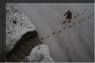 For a photo workshop in January, my assignment was to make a photo from a bird's-eye view. I had been tossing the idea around in my head to approach this task by standing on the balcony of our house that overlooks the snow-covered stairs below. This photo was made early in the morning, at 7:30 a.m., just before my children left for school. It was snowing outside and the light was favorable. At the doorstep the idea suddenly rushed to mind. I was also lucky because the white snow lightened the otherwise dark stairs, but the textures, patterns and details beneath the snow were still visible.The image was made in RAW format, and the ISO was set to 640 because of the low light conditions. The Canon 7D's settings included low speed continuous mode, 19-point auto selection AF (autofocus) and Al Servo mode.